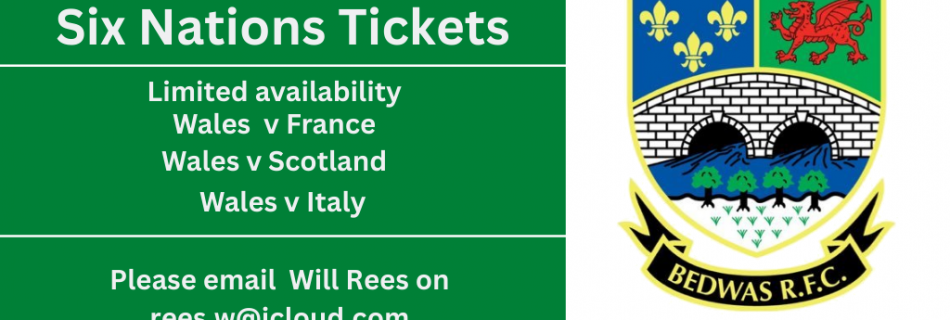 Bedwas RFC has some tickets available for the following 2026 Six Nations Championship games. Please email Will Rees.
