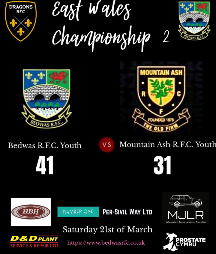 Bedwas RFC Youth hosted Mountain Ash RFC Youth at St Cenydd Leisure Centre and earned a bonus point win against a spirited Mountain Ash side. Scorers were: