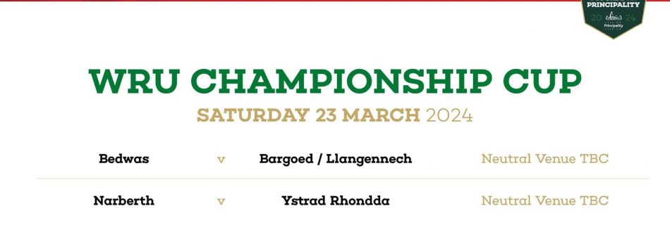 The draw has been made for the semi-finals of the WRU Championship Cup. More details to follow when the game between Bargoed and Llangennech is completed.